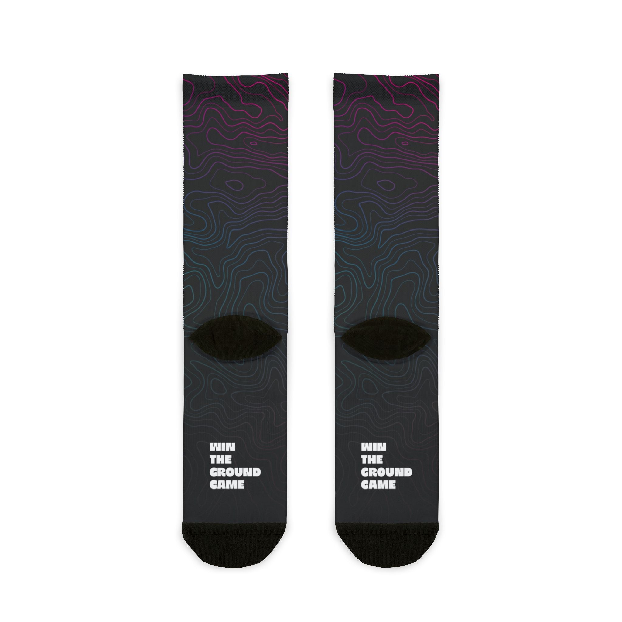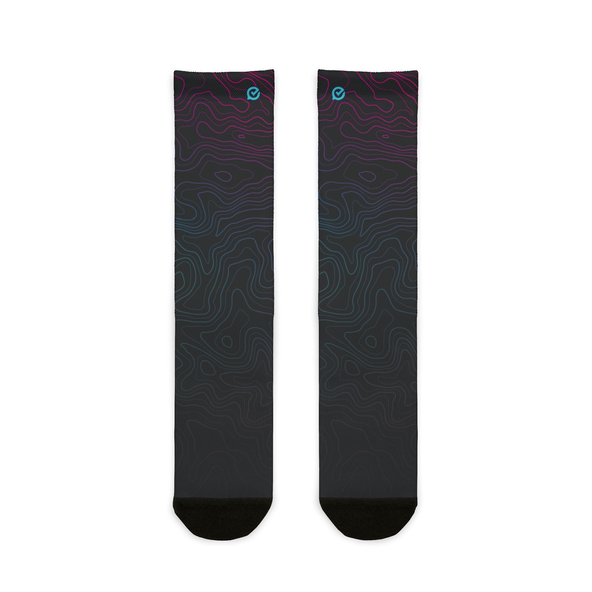 Comfort and style is the name of the game for these sublimation crew socks. Designed to fit universally from women's size 5 US up to men's size 13 US, these socks strike the perfect balance of durability and flexibility thanks to their fabric blend. (60% polyester, 10% acrylic, 25% nylon, 5% spandex) All socks come with stylish black heel and toe accents.